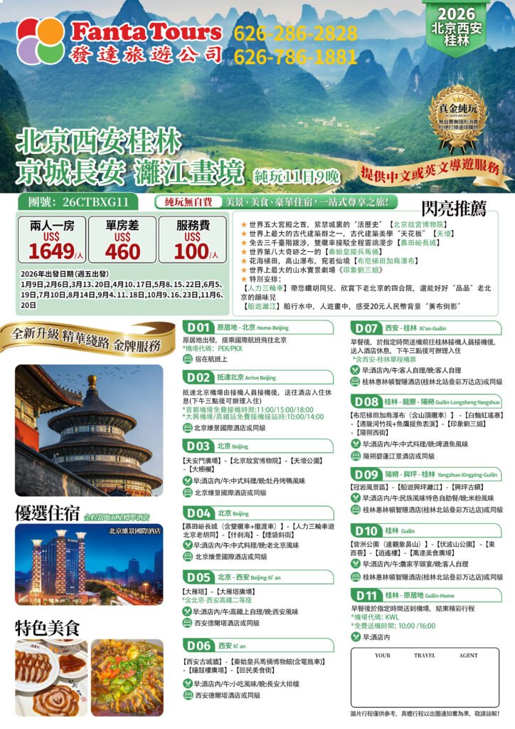 26CTBXG11: Beijing, Xi’an, & Guilin, Imperial Capitals & Picturesque Li River (Pure Sightseeing (11 Days, 9 Nights) (Chinese & English) — 发达-26CTBXG11 北京西安桂林 京城長安 灕江畫境 純玩11日9晚(中英)By /
