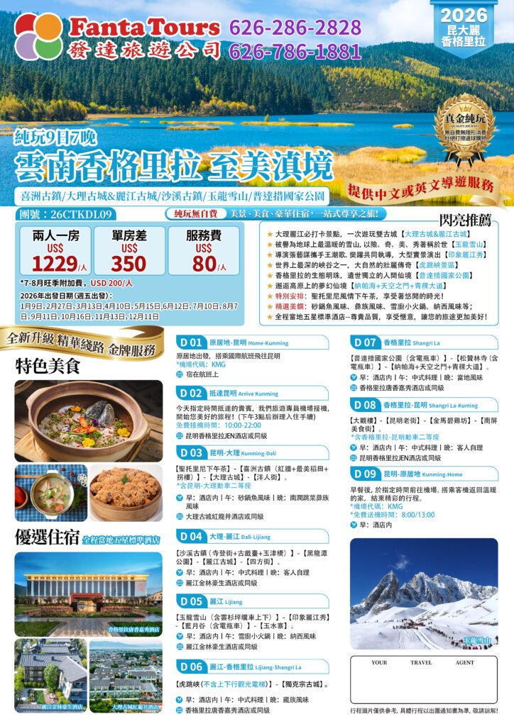 26CTKDL09 — Yunnan Shangri-La: The Ultimate Beauty of the Yunnan Realm (Pure Sightseeing) (9 Days, 7 Nights) — 26CTKDL09 雲南香格里拉 至美滇境 純玩9日7晚By /