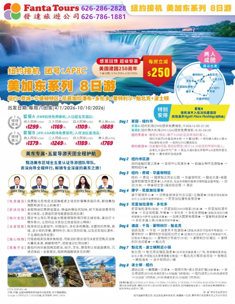 AP6_6F & APR7_7F: Classic East Coast Tour (New York Airport Pickup) (6 to 7 Days) — AP6_6F&APR7_7F 纽约接机 美东经典 6-7日游