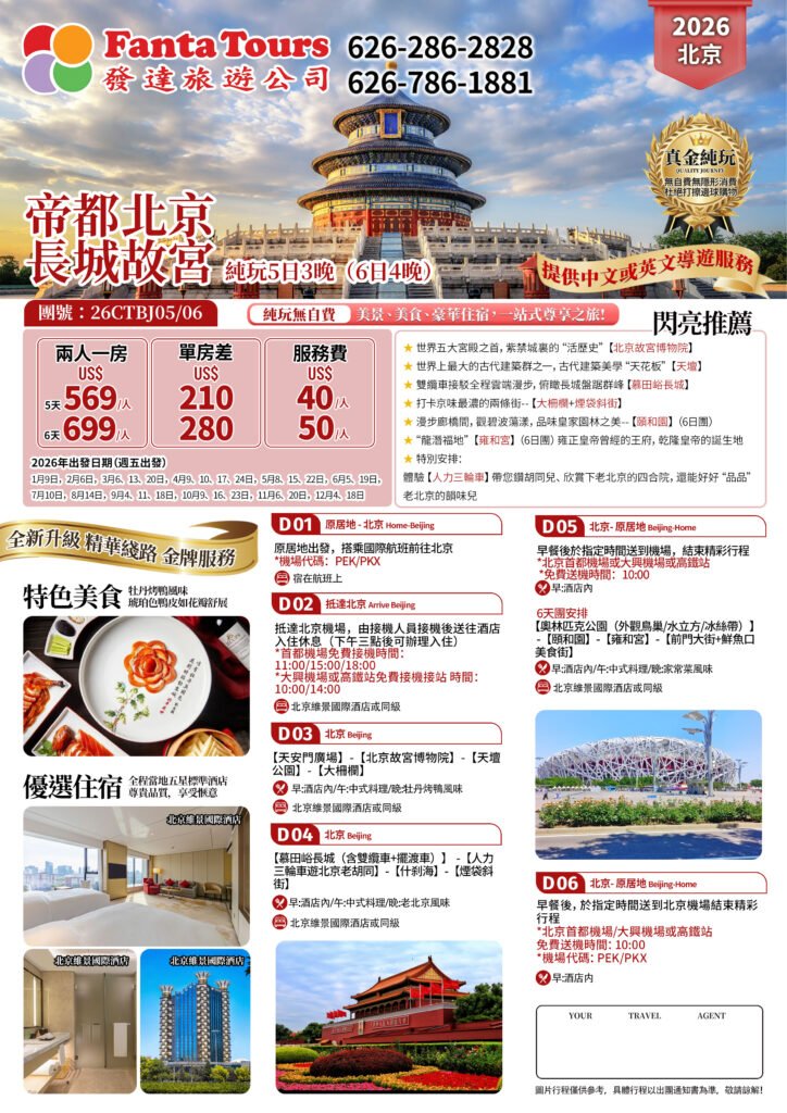 Beijing, Great Wall, Forbidden City Tour (26CTBJ05-06) (5 Days, 3 Nights or 6 Days, 4 Nights) – 发达-26CTBJ05-06 帝都北京 長城故宮 純玩5日3晚(6日4晚)By /