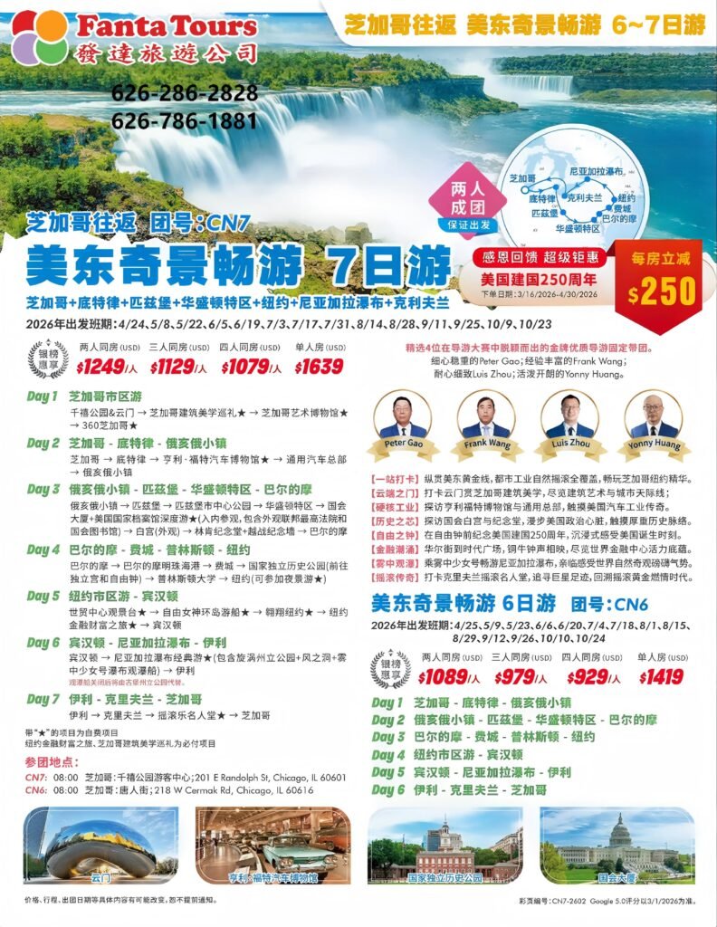 CN6 & CN7: Eastern U.S. Wonders Tour (Departure from Chicago) (6–7 Days) — CN6&CN7 芝加哥出发 美东奇景畅游 6-7日游By /