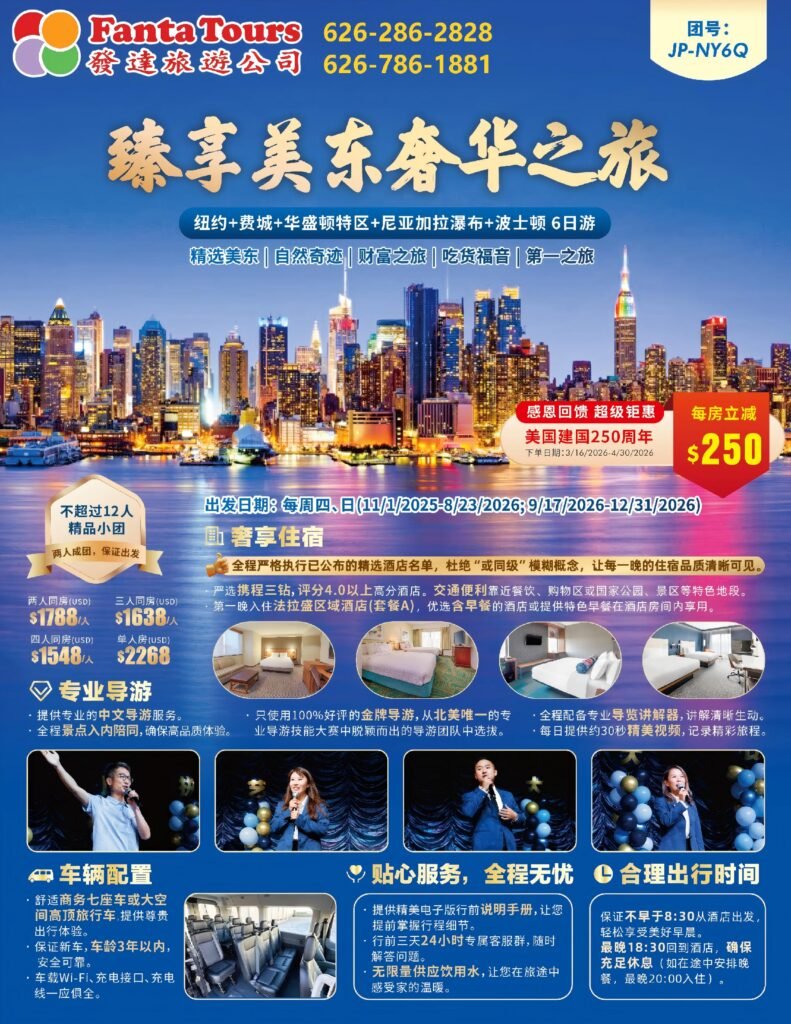 JP-NY6Q: An Exclusive Luxury Tour of the U.S. East Coast (NY, Philadelphia , Washington D.C., Boston and Niagara Falls (6 Days) — JP-NY6Q:美國東岸尊享奢華之旅(紐約、費城、華盛頓特區、波士頓及尼加拉瀑布)-6日遊By /